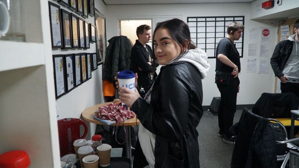 The main things I dealt with were the crew, making sure the set was always clean, making the cast and crew’s teas and coffees – which I must say, I had a lot of compliments on. The first thing I did when I stepped on set, I introduced myself to the first year runners, who I hadn’t met before and who I would be working with. The second thing I did was go around all of the cast and crew to see if they would like a drink. I always have a small notepad and pen on me for this specfic thing, I made a my own little table for teas/coffees last academic year, which I then showed a first year (now second year), who has now showed his mentors this easy but helpful way to actually keep the cast and crew happy!